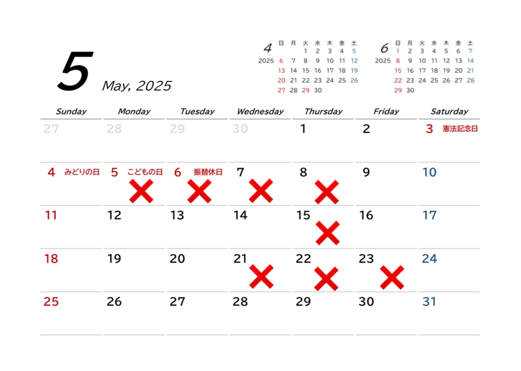 5月の出勤日です!